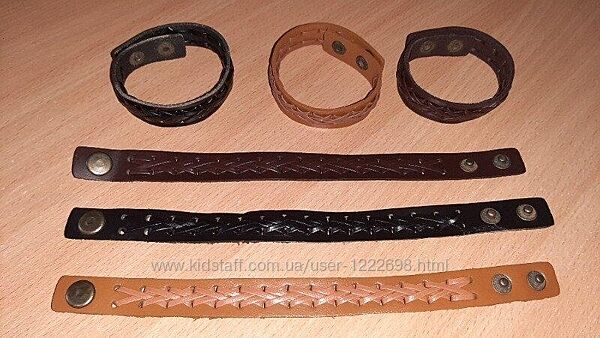 Длина кожаных браслетов составляет 23 см, а ширина 18 мм. Браслеты фиксируются с помощью двух кнопок. Новые. Ціна 26 гривень
