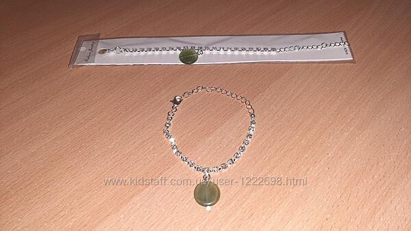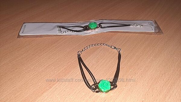 Браслет на руку подвійний Зеленої троянди із застібкою. Довжина 20 см. Ціна 28 гривеньБраслет на руку металевий із блискучими камінчиками та пластиковою круглою зеленою підвіскою. Є застібка. Довжина 19 см. Нові, в пакованні. Ціна 28 гривень
