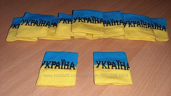 Напульсник тканинний синьо - жовтий з написом Україна. Ширина 6см, хорошо тягнеться. Нові Ціна 20 гривень