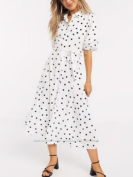 Платье рубашка вискоза. 14р. платье белое в горошек New Look