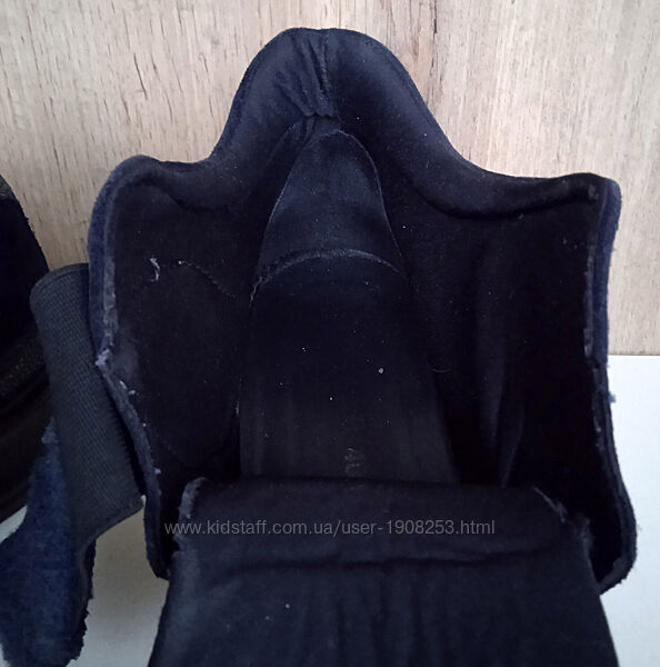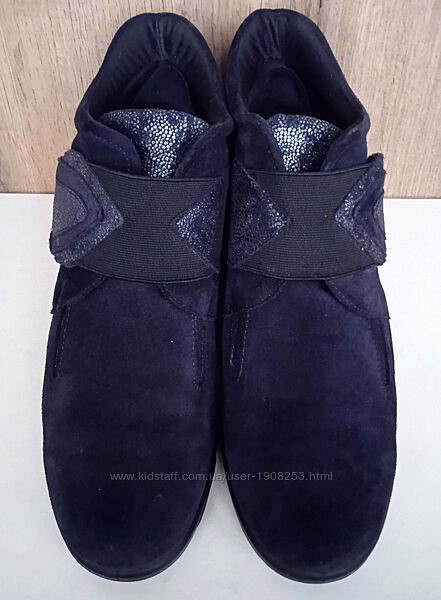 Особливості моделі: натуральна замша, м´які всередині, легенькі по вазі, зручно взуваються завдяки липучкам, мають універсальний класичний дизайн. Можуть підійти на ногу з високим підйомом.Матеріал: зовні натуральна замша, всередині гладенький текстиль. На язичках є поролонова термопідкладка, зверху по периметру - м´які поролонові валики, що попереджують натирання. Устілки шкіряні, виймаються, мають пружні амортизуючі основи.