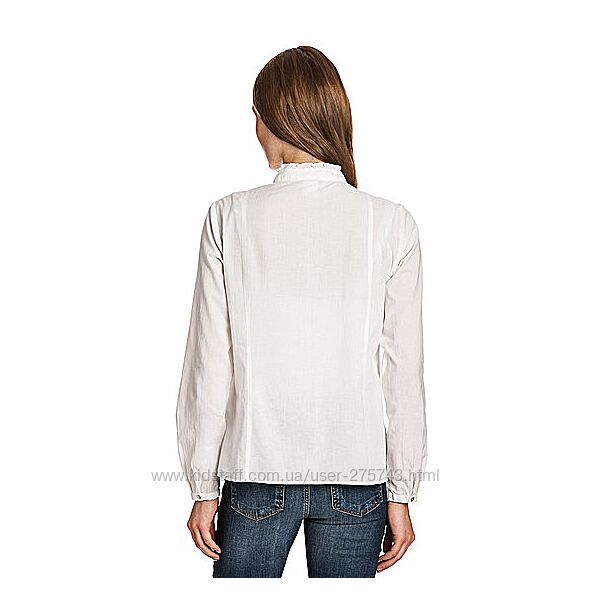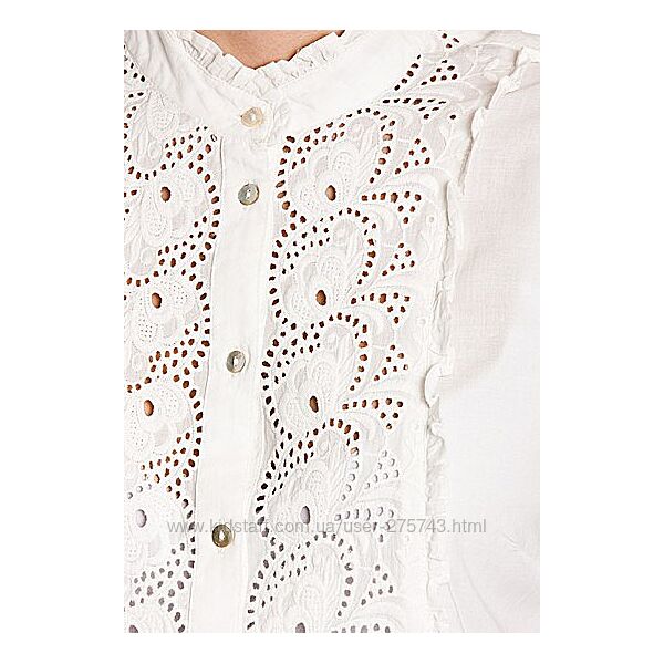 Блузка производство VERO MODA, хлопок, размер XL. Белая блузка на застежке из перламутровых пуговиц, воротничек-стоечка и небольшой манжет так же на пуговичке, впереди блузка украшена прошвой и оборочкой.Состав 100% хлопок.Замеры размер XL -длина 64 см плечи 41 см, ширина под проймой 52 см, рукав 62 см.