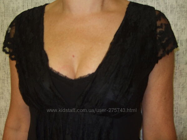 Платье с коротким кружевным рукавчиком , отрезное под грудью ,на