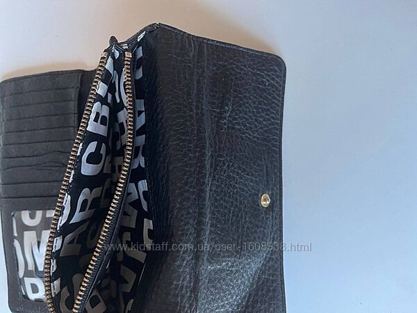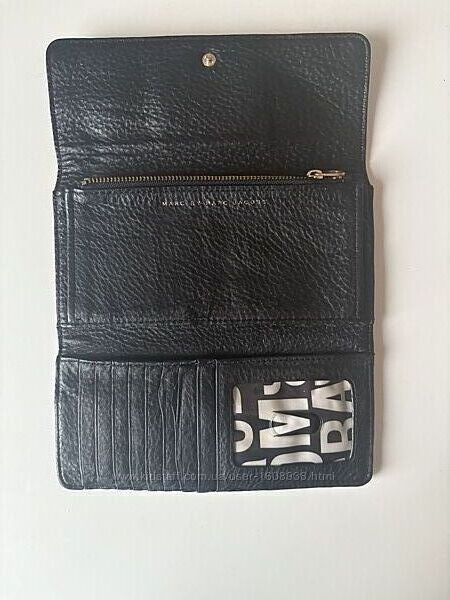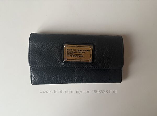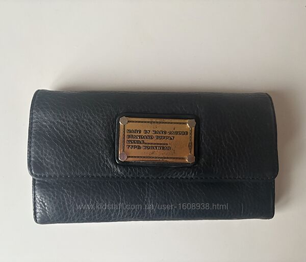Гаманець Marc by Marc Jacobs. На металевій табличці гаманця є напис "MARC BY MARC JACOBS STANDARD SUPPLY MODEL TYPE WORKWEAR". Виготовлений з чорної шкіри з фактурою. Гаманець має форму, що розкладається, і закривається на кнопку. Розмір 19*10 см.