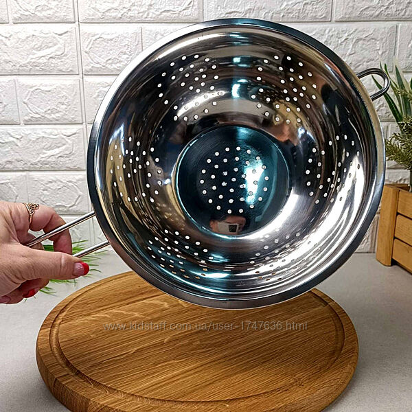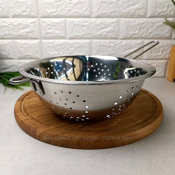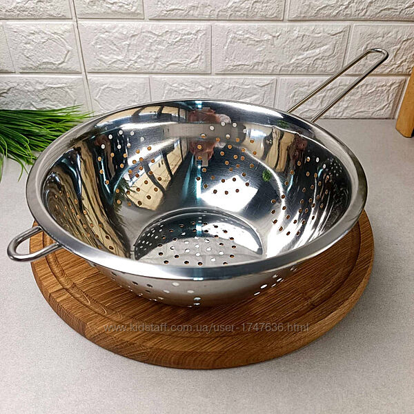 Друшляк A-plus з довгою ручкою! ✔️ Використовується для миття та промивання ягід, грибів, фруктів і овочів ✔️ Підходить для відціджування макаронів, компотів та сирної сироватки ✔️ Міцна та довговічна нержавіюча сталь ✔️ Зручна довга ручка для безпечного користування ✔️ Діаметр: 26 см