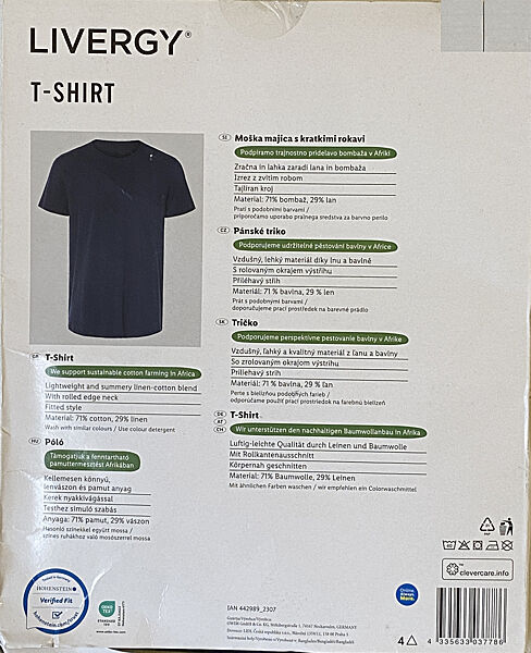 Подробное описание: Футболка із суміші льону та бавовни для чоловіка Livergy LIDL 442989 темно-синій