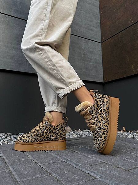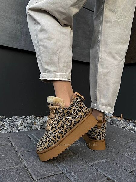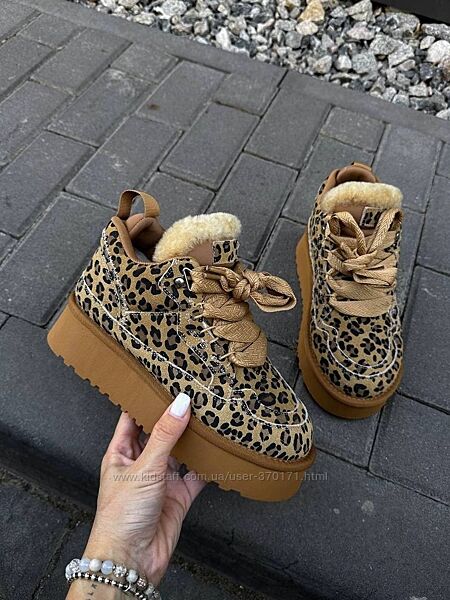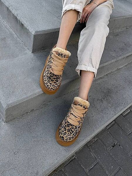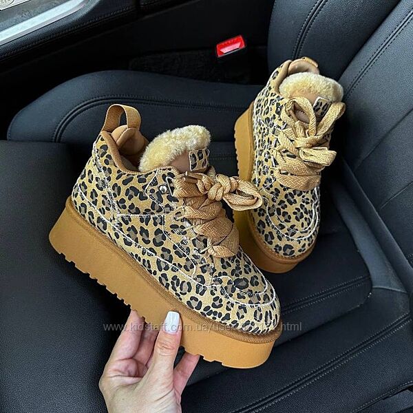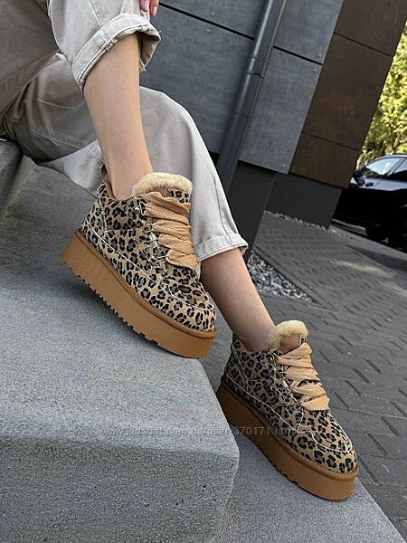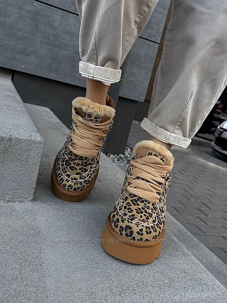 Подробное описание: Круті замшеві угги на шнурівці з лео принтом