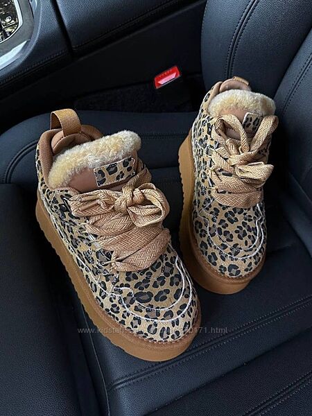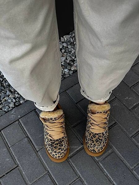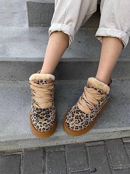 Круті замшеві угги на шнурівці з лео принтом