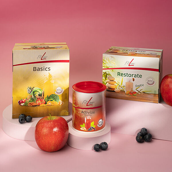 Опис Набір FitLine Optimal-Set забезпечує вашу родину необхідними вітамінами та поживними мінералами щодня. Наш цілісний підхід полягає в тому, щоб заповнити нестачу поживних речовин у вашому раціоні, адже ваше самопочуття має значення. Набір FitLine Optimal-Set поєднує в собі нашу передову технологію NTC© з аюрведичними традиціями і містить добірні екстракти фруктів, овочів, спецій і трав, щоб забезпечити ваш організм поживними речовинами, необхідними для активного дня і спокійної ночі. Він містить 3 продукти для щоденного прийому: FitLine Basics та FitLine Activize Oxyplus для підтримки вашої енергії¹ вранці та FitLine Restorate ввечері. FitLine Basics: FitLine Basic ваш щоденний напій для захисту клітин² та імунної системи³. Смак: апельсин. FitLine Activize Oxyplus: Підготуйтеся до нового рівня енергії ¹і залишайтеся зосередженими⁴ для продуктивних днів. Смак: чорна смородина. FitLine Restorate Exotic: FitLine Restorate - ідеальний напій для спокійної ночі - напій з високоякісним вмістом кальцію, магнію, селену, міді, марганцю, хрому та вітаміну D. Смак: опунція (колюча груша). Переваги: FitLine Basics: Захищає ваші клітини Імунна система FitLine Activize Oxyplus: Енергія Потужність Концентрація FitLine Restorate Exotic: Волосся, нігті та шкіра Кістки Зуби Відновлення Селен, вітамін Е та вітамін С сприяють захисту клітин від оксидативного стресу. ²Селен і вітамін С сприяють нормальній роботі імунної системи.³Багатий на вітамін В6 - сприяє нормальному метаболізму, що забезпечує вироблення енергії. ⁴Вітамін В6 (піридоксин), вітамін В12 (кобаламін) і вітамін С сприяють нормальній психологічній функції. ⁵Цинк сприяє підтримці нормального стану волосся, нігтів та шкіри. ⁶Кальцій необхідний для підтримки нормального стану кісток. Магній сприяє підтримці нормального стану кісток. Марганець сприяє підтримці нормального стану кісток. ⁷Магній сприяє підтримці нормального стану зубів. Кальцій необхідний для підтримки нормального стану зубів. ⁸Багатий на магній - сприяє нормальному функціонуванню нервової системи та нормальній роботі м´язів. Ексклюзивна Концепція Транспортування Поживних Речовин (NTC®) доставляє поживні речовини тоді, коли вони потрібні, і туди, де вони потрібні - на клітинний рівень зсередини та ззовні. Використання: FitLine Basics: До вмісту цього пакетика порошку (12 г) додати 180 мл негазованої води. 1 порція (1 пакетик) на день. FitLine Activize Oxyplus: Додати 1 мірну ложку (1,67 г) в порожню склянку, додати 40 мл негазованої води і розмішати до повного розчинення порошку. Вживати 3 рази на день. FitLine Restorate Exotic: Впакету (6,7 г) розчинити при постійному помішуванні в 250 мл води без газу. Відразу ж після розмішування випити маленькими ковтками. 1 порція на добу, ввечері перед сном. Basics: Не перевищуйте зазначену рекомендовану добову дозу. Продукти додаткового харчування не слід використовувати як заміну різноманітному та збалансованому харчуванню та здоровому способу життя. Зберігати в недоступному для дітей місці. Продукт додаткового харчування у формі порошку, що містить вітамін В1, вітамін В2, вітамін С, вітамін Е, провітамін А, мікроелемент селен та дієтичну клітковину. Смак: апельсин. З цукром та підсолоджувачем. 30 пакетиків по 12 г кожен = 360 г. Activize: Не перевищуйте зазначену рекомендовану добову дозу. Продукти додаткового харчування не повинні використовуватися як заміна різноманітного та збалансованого харчування та здорового способу життя. Зберігати в н