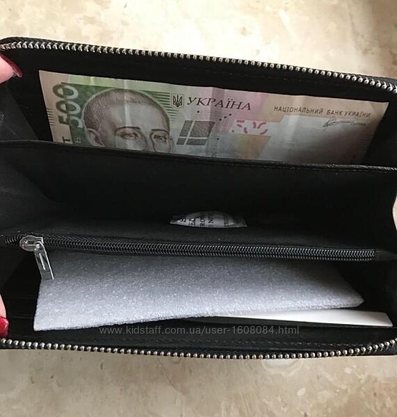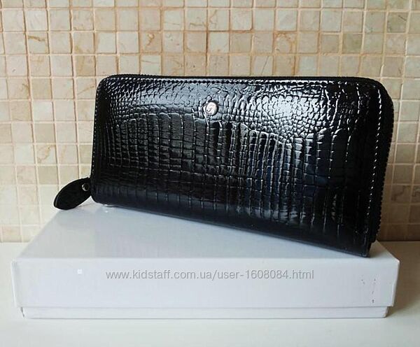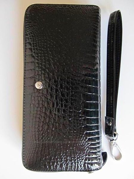 Якісний жіночий гаманець-клатч чорногокольору з натуральної шкіри. Лицьова