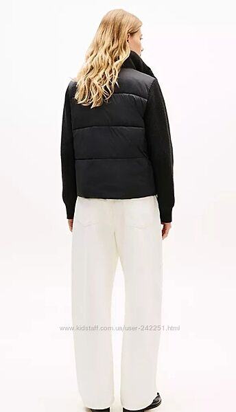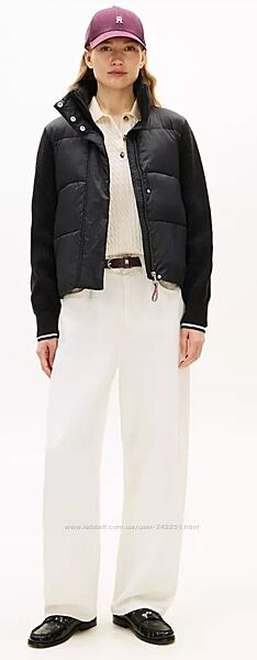 Жіноча куртка Tommy Hilfiger. Затишна, як ваш улюблений кардиган, і тепла, як ваш надійний пуховик, ця куртка змішаного матеріалу виготовлена з утепленим каркасом, ребристим коміром і рукавами з в´язаним верхом.