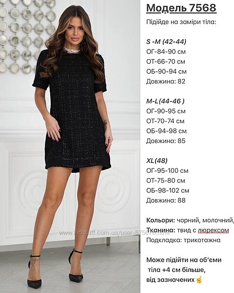Подробное описание: р.42 до 48р. Елегантна сукня з твіду з люрексом