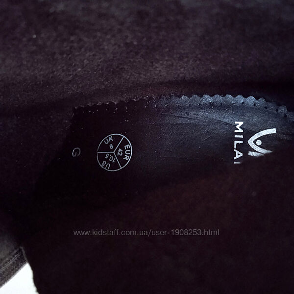 Бренд: VA Milano.Особливості моделі: європейський виробник, натуральна шкіра, надзвичайно легенькі по вазі, м´які всередині, утеплені, мають неслизьку підошву з широкими стійкими підборами і елегантний дизайн. Нові (сток, без функціональних дефектів, є плями на поверхні, внаслідок чого зроблена уцінка).
