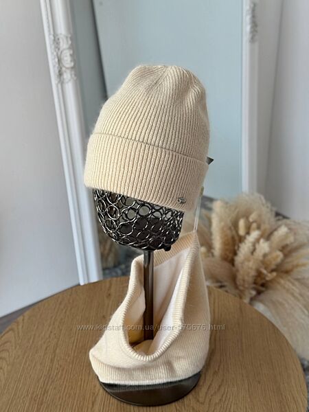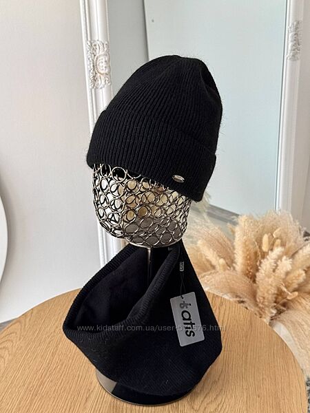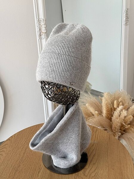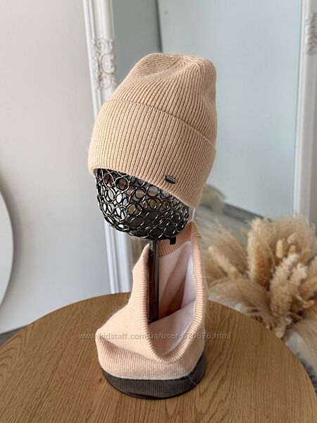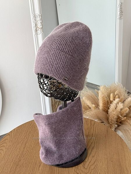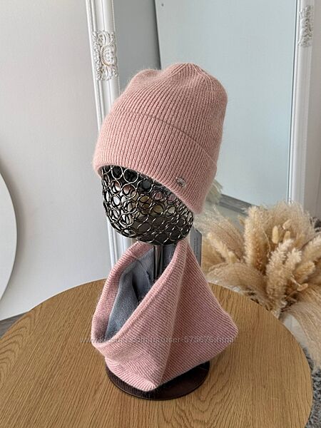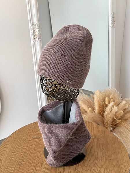55-59 Теплий комплект з ангори шапка та баф повністю на флісі