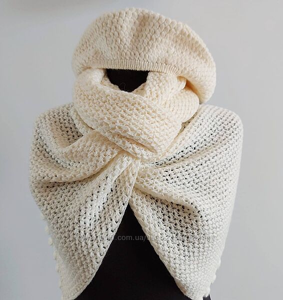 Комплект в´язаний ручна робота. Сезон осінь-зима.Нитки вовна з акрілом молочного кольору.