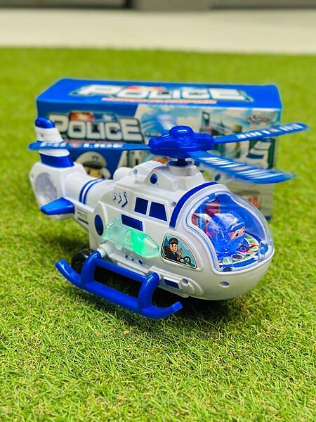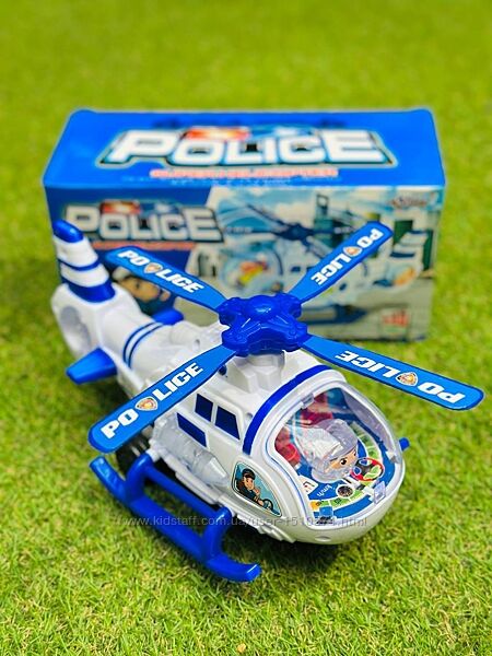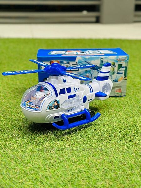 Движение вертолета сопровождается работой лопастей, громким звуком сирены и эффектной подсветкой.