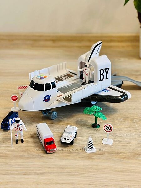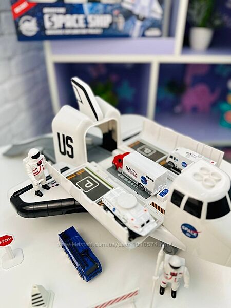Большой набор космический шаттл-парковка внутри хранятся и транспортируются машинки и два настоящих космонавта