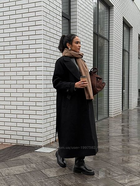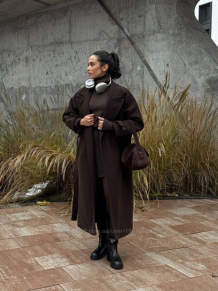 Зимове тепле пальто Воно має довжину міді, пояс на талії, який підкреслює