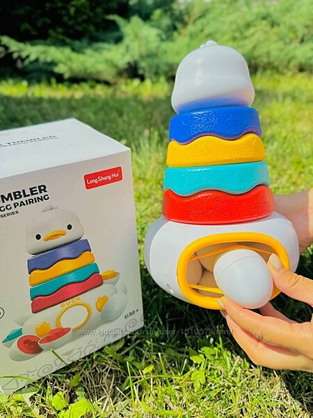 Миленькая уточка вытащила свою шею, одела красочные бусы и начала вертеться и вращаться во время своего зажигательного танца. Ведь это не просто красивая птичка. Это настоящая пирамидка, которая сделана в виде неваляшки, которая всегда готова повеселить малыша