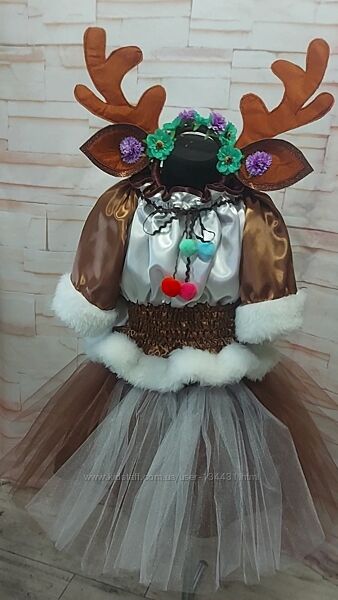 Продажа карнавальных костюмов,пошив под заказ.У нас в ассортименте есть всевозможные персонажи из сказочных героев, животных и птиц и много других необычных персонажей.Олененок ( блузка, юбка, обруч)-800 грн.