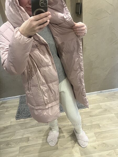 Пуховик від Zara, розмір L в нюдовому ніжному кольорі. Дуже легкий та теплий)Пуховик ковдра