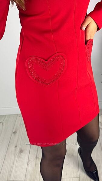 Плаття приталеного крою, з декоративними гаманцями, застібається позаду на блискавку, на рукавах розріз