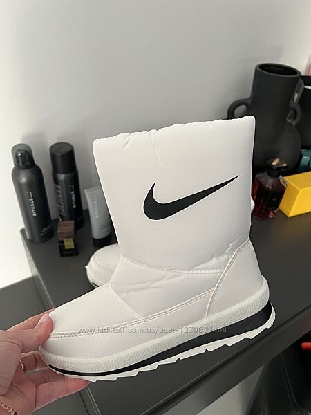 Сапоги дутики женские, белые, Найк