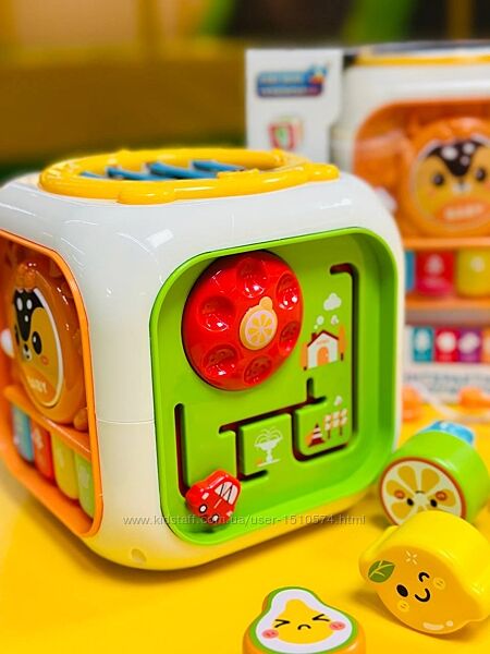 Такая игрушка поможет малышам не только весело проводить время, но и развиваться. Каждая грань куба предлагает новую игру.