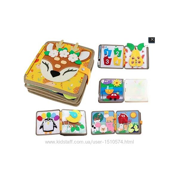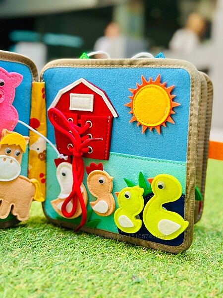 Она не только доставляет удовольствие от игры, но и помогает развивать важные навыки - внимательность, логику, память и мелкую моторику. В каждой странице скрыты увлекательные задачи✨: сортировка, шнуровка, игры с липучками и упражнения для пальчиков.