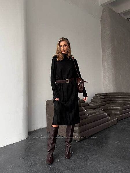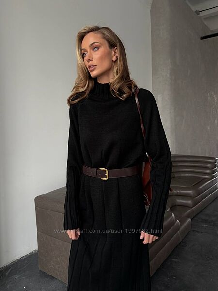 Подробное описание: Жіноча сукня міді з горлом тепла в´язана з довгим рукавом вільна зимова