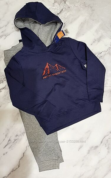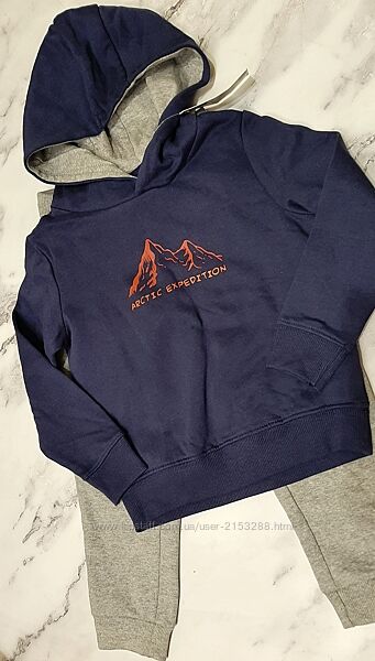Спортивний костюм на хлопчика, від ТМ LUPILU, на утепленні. Худі темно синього кольору та сірі штанці на манжетах.Розмір 98-104 см.