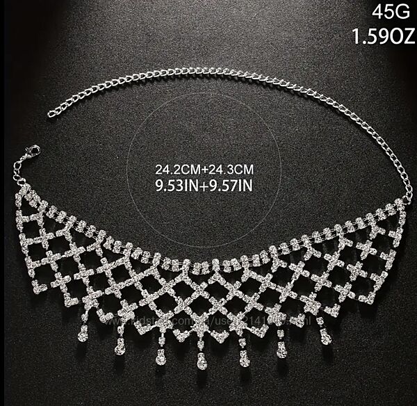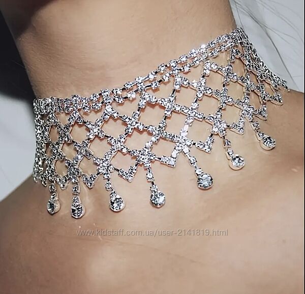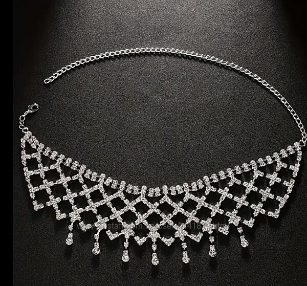 Подробное описание: Красивый широкий чокер камни стразы, блестящее колье стразы