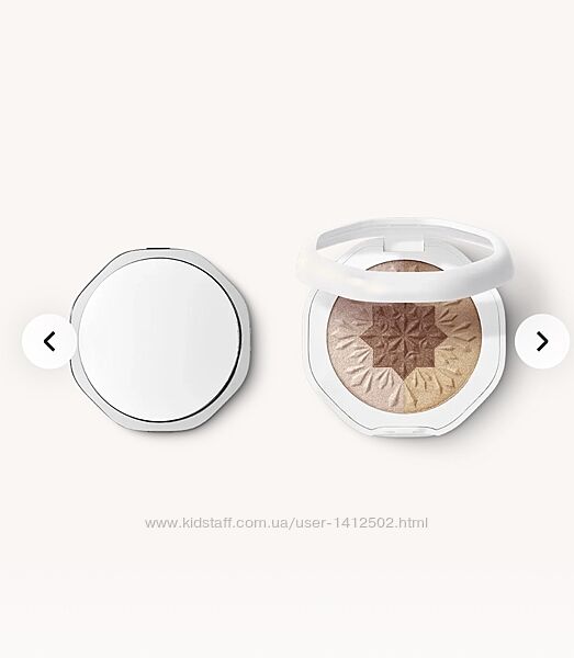Сформуйте своє сяйво за допомогою цього оксамитового, різнокольорового пудрового хайлайтера. Концентрат чистого блиску, який підкреслює обличчя багатовимірним сяйвом