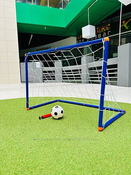В комплекте есть ворота, надувной мяч с насосом, для еще большей увлечённости игры.