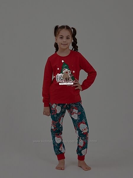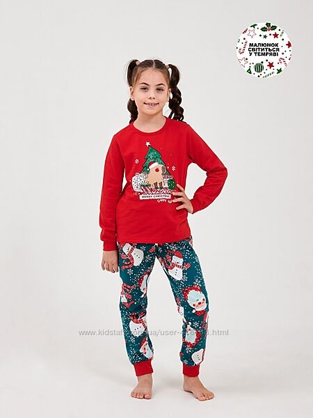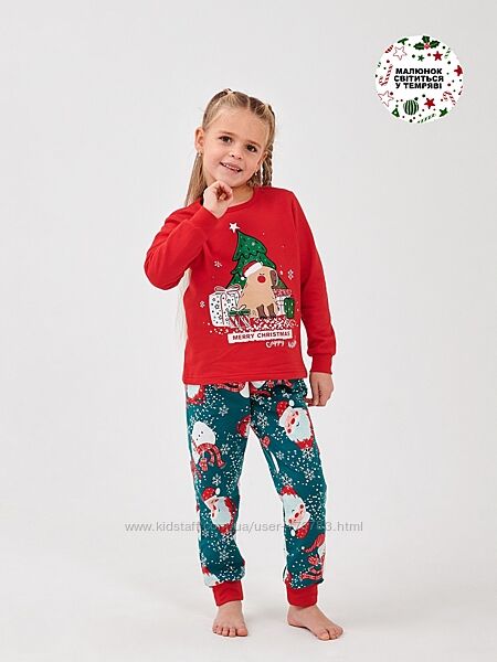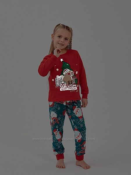 Дитяча утеплена різдвяна новорічна піжама для дівчинки. Малюнок світиться в темряві.Тканина: футер з начісом
