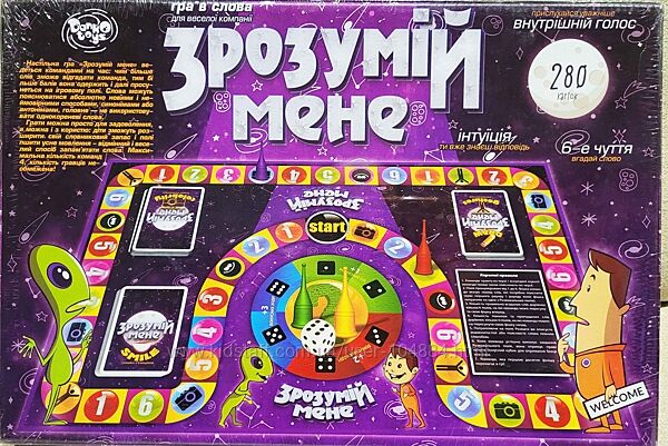 Настільна гра «Зрозумій мене» фірми Danko toys – весела дитяча гра, розрахована на маленьких інтелектуалів.Комплект містить 280 гральних карток, включаючи окремі карти з 1260 словами, 50 карт з 300 відомими людьми, а також картки з емоціям, кубик, фішки, гральну платформу і докладні правила для початківців.