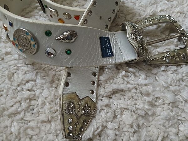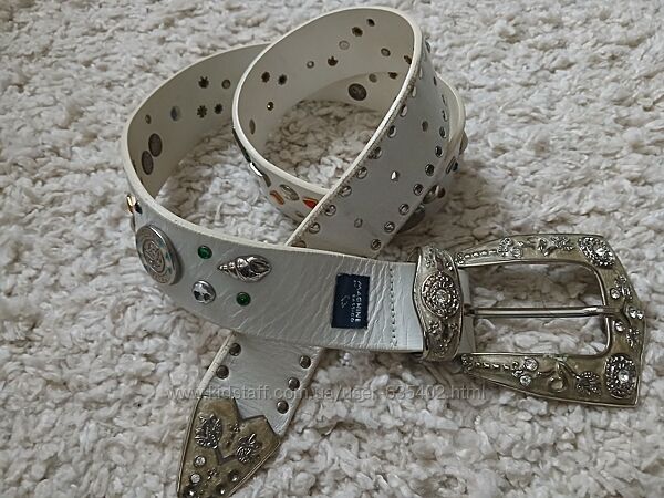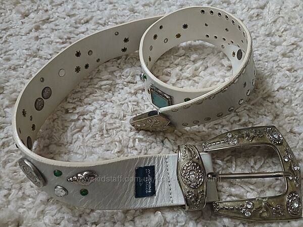 Подробное описание: Стильный фирменный кожаный ремень белый Металлическая пряжка, камни