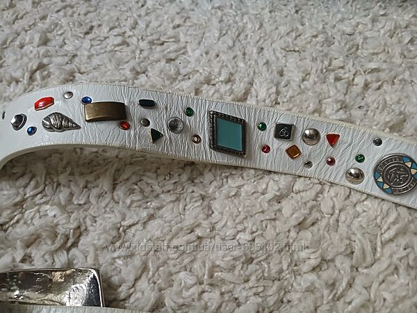 Украшения по всему ремню камни, ракушки, заклёпки...