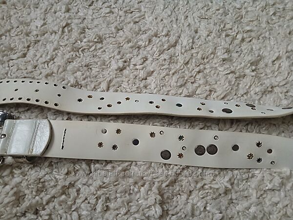 Стильный фирменный кожаный ремень белый Металлическая пряжка, камни