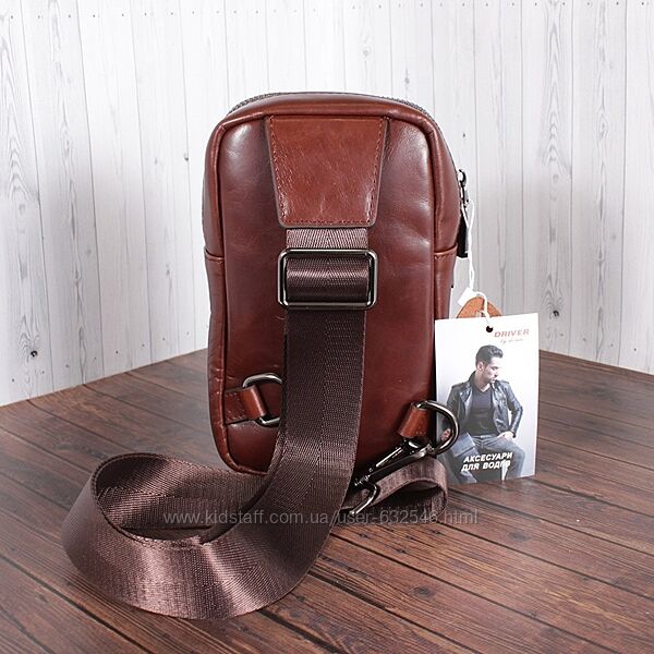 Компактна барсетка DRIVER з натуральної шкіри. Зручна модель носиться спереду на грудях. Всередині 2 відділення і 1 кишеня, також є додаткова кишеня зовні. Довжина ременя регулюється. Лицьову сторону прикрашає фірмовий логотип. Ця модель буде гармонійно поєднуватися зі стилем casual, класичним і сучасним діловим. Обирайте модні та надійні аксесуари бренду DRIVER by DE ESSE! Розмір (В*Ш) (см)20*12 Ширина дна (см)5 Довжина ременя (см)130