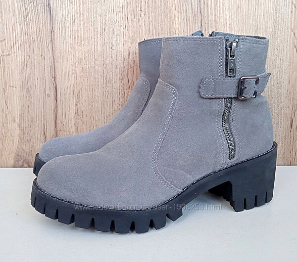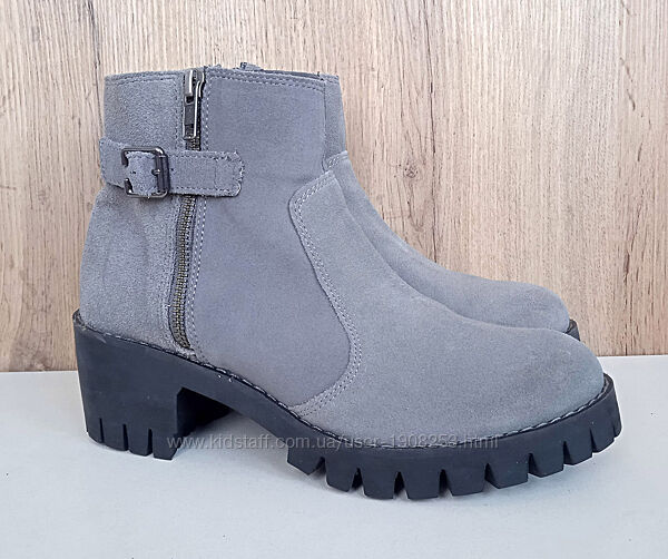 Подробное описание: Натуральні замшеві ботильйони, демі черевики сірі, весна осінь, р. 37