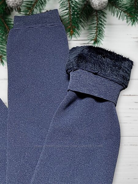 Дуже теплі зимові лосини на хутрі (плюш)Колір джинсовий темний в косий рубчік.