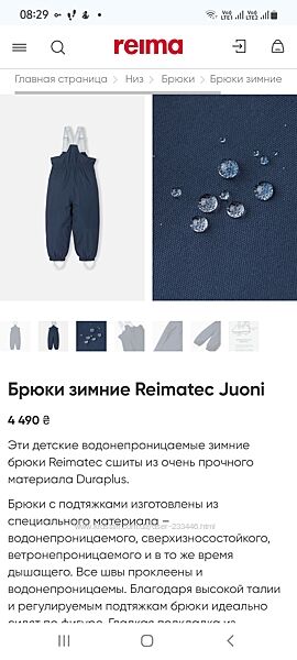 Ступінь утеплення 0- мінус 20 Утеплювач: Reima Soft Loft 160/140 г/м² Витримує товщу води 10000мм (найвища у рейма)