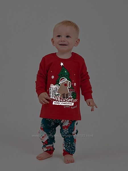 Дитяча та підліткова утеплена різдвяна новорічна піжама для хлопчика. Світиться в темноті.Тканина: футер з начісом