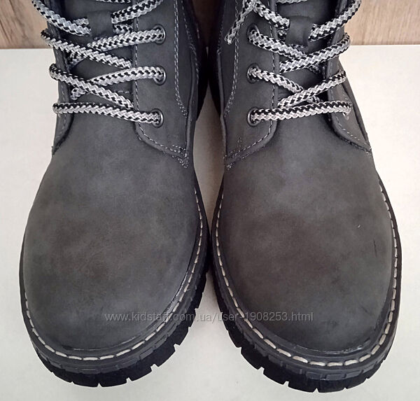 Стан: нові (сток з Німеччини, без етикетки). Функціональні пошкодження чи дефекти відсутні. Причина потрапляння в сток: неакуратне місце проклейки на мисі лівого, не дуже помітне, коли черевики на ногах. Транспортувалися і зберігалися без упаковки, тому вигляд не як з коробки, є незначні штрихи на поверхні, теж малопомітні при ношенні. Стан на фото.