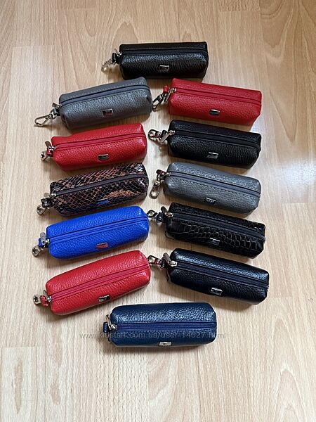 Ключницы из натуральной кожи, закрываются на молнию, внутри для крепления ключей используется кольцо. Снаружи для удобства есть карабин