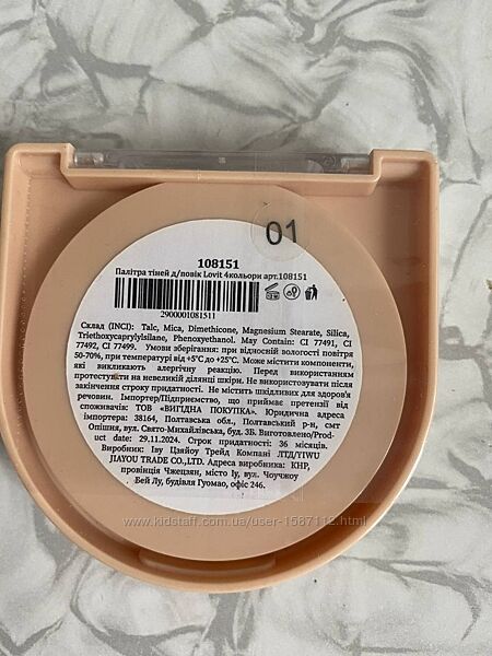 | Группа товаров | Паллета, Тени для век |