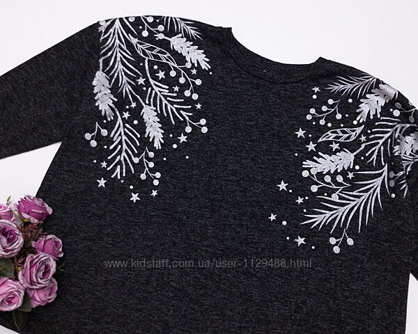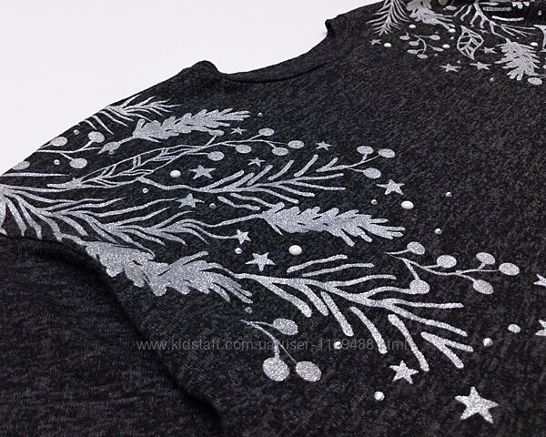 Новый год к нам мчится, скоро все случится... А давайте купим праздничную кофту George.Мягкая, уютная, свободного расслабленного кроя, линия плеча спущена, низ чуть закруглен. Выполнена из приятного к телу эластичного серого меланжевого трикотажа, богато декорирована блестящим новогодним принтом с объемными бусинами и стразами. Вещичка универсальная, легко сочетается с любым низом.