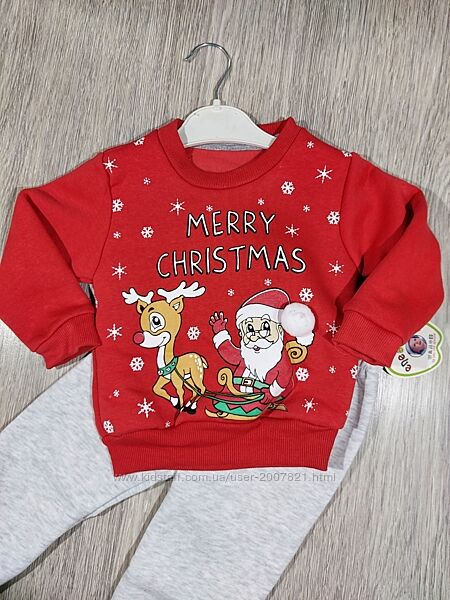 Теплий костюм для хлопчика, чудовий подарунок до Нового Року! Всередині тонкий фліс. Вік 3 роки. Заміри:3 роки: кофта - ширина плечей 28 см, довжина рукава від плеча 28 см, Пог 30 см, довжина виробу 36 см; штани - Пот 22 см, стегна 32 см, довжина виробу 48 см, крок 28 см.
