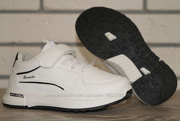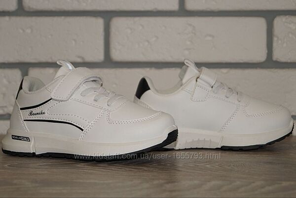 Топова модель білих кросівок із чорними вставками для дівчаток та хлопчиків.Якісна, комфортна модель на кожен день. Кросівки чудово поєднуються з одягом різних кольорів, доповнять будь-який образ дитини.